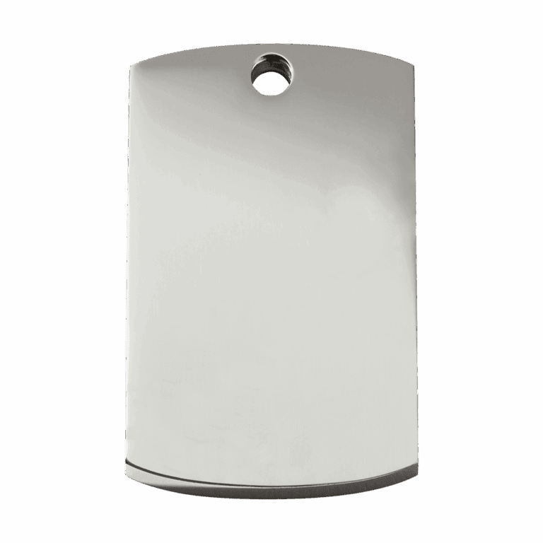 Mit einem Gewicht von nur 16 Gramm bietet diese Hundemarke aus Metall ein angenehmes Tragegefühl für kleine bis mittelgroße Hunde. Das schlichte, moderne rechteckige Design fügt sich harmonisch an einen passenden Halsbandtyp an, ohne den Hund zu beschweren.