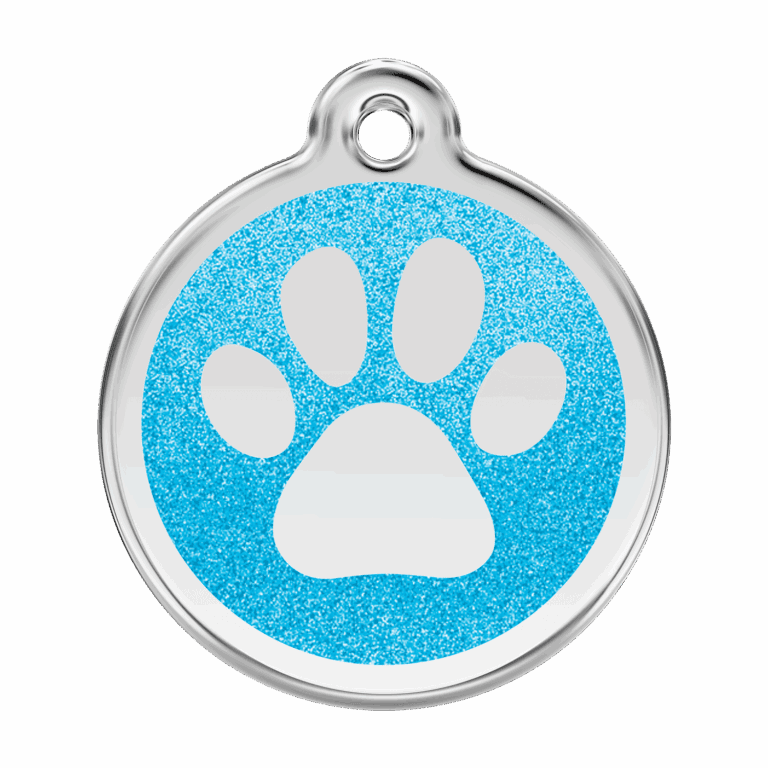 Große Hundemarke mit glitzerndem Pfotenabdruck in Aqua-Emaille