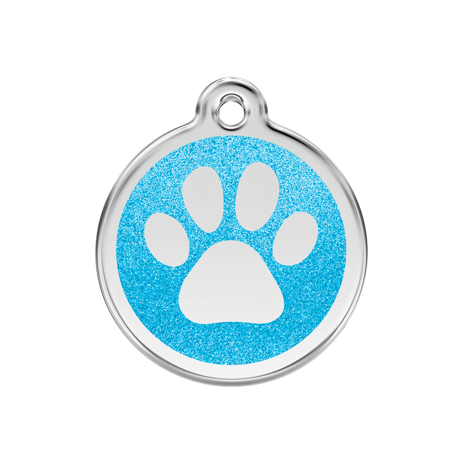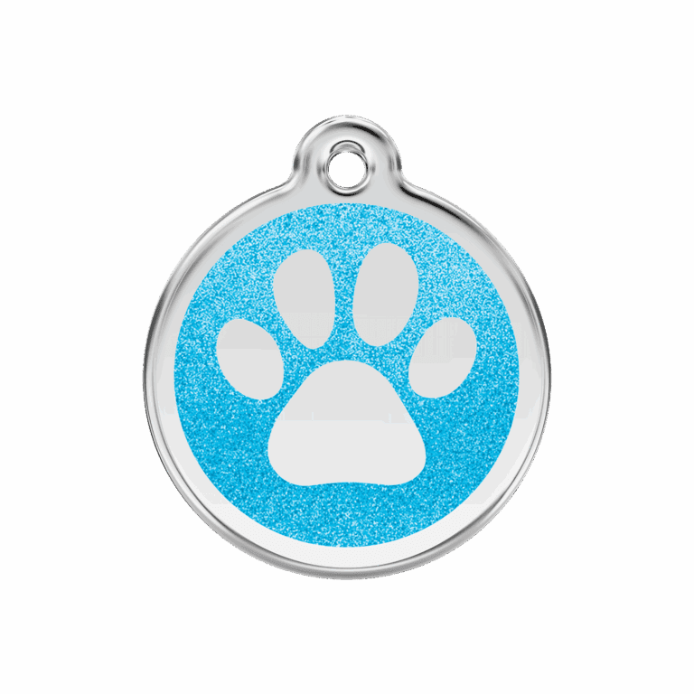 Hundemarke Größe M mit glitzernder Aqua-Emaille und funkelndem Pfotenabdruck