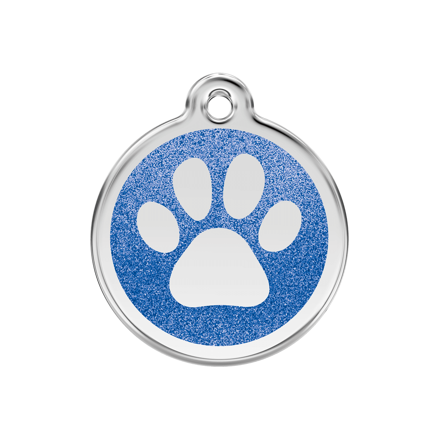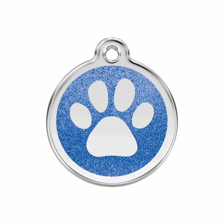 Hundemarke Größe M mit funkelndem Pfotenabdruck in dunkelblauem Glitzer-Emaille