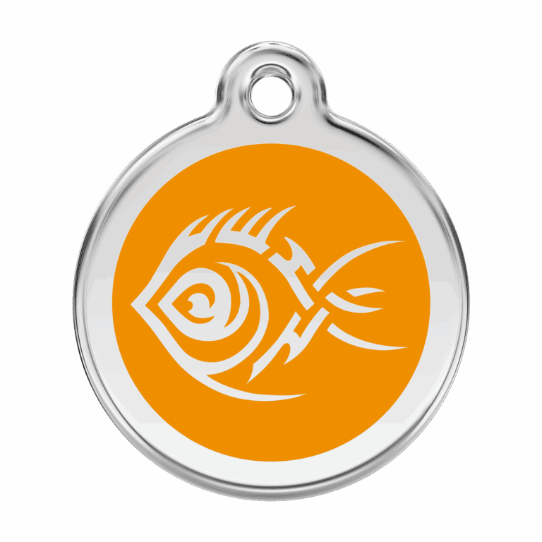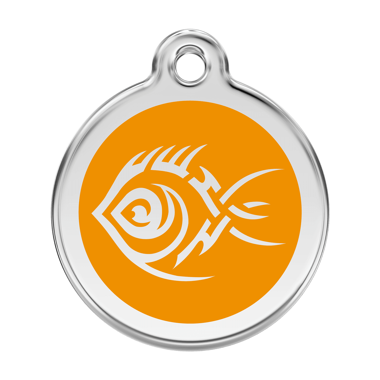 Hundemarke Tribal-Fisch Orange Größe L aus Emaille und Edelstahl