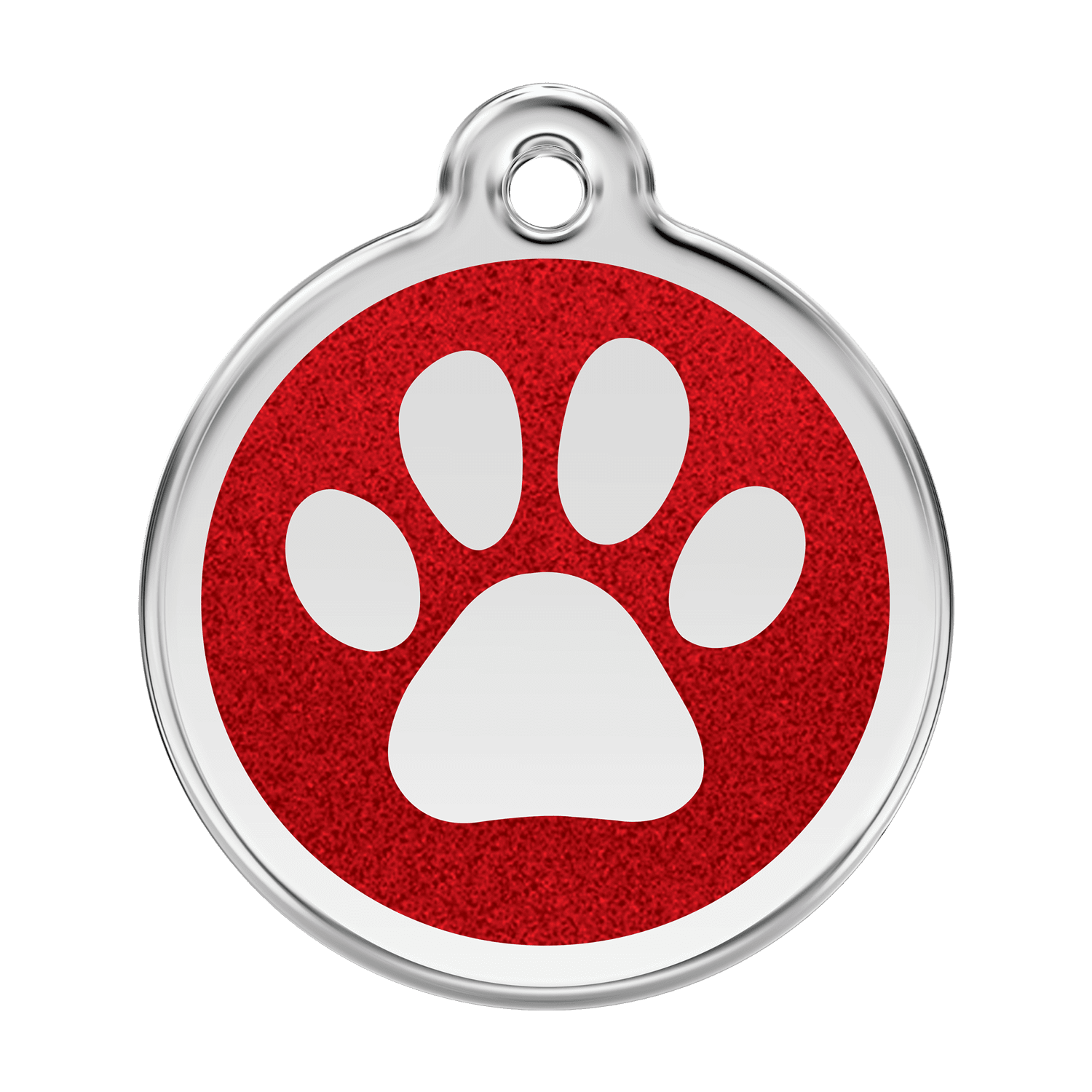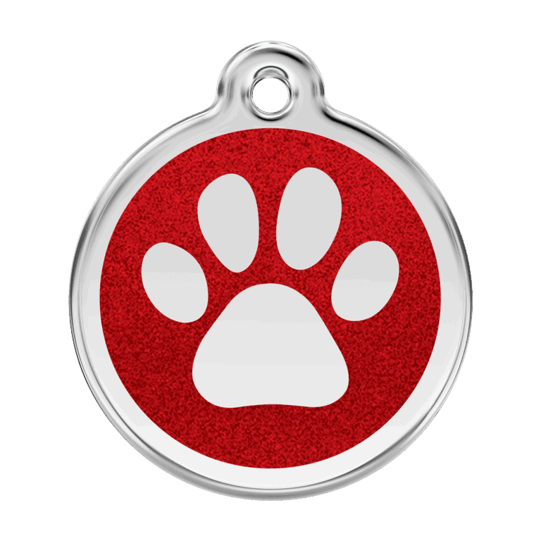 Hundemarke Größe L mit rotem Glitzer-Emaille und funkelndem Pfotenabdruck