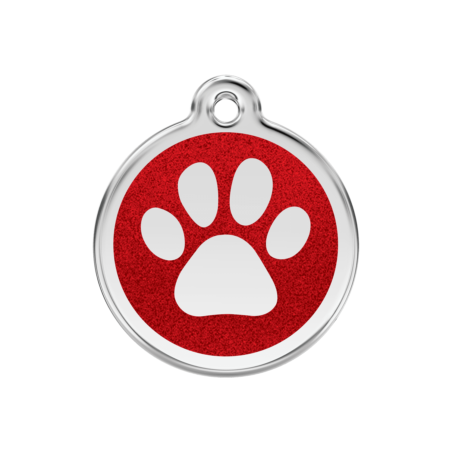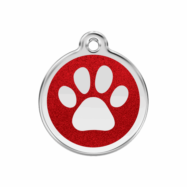 Hundemarke Größe M mit rotem Glitzer-Emaille und funkelndem Pfotenabdruck