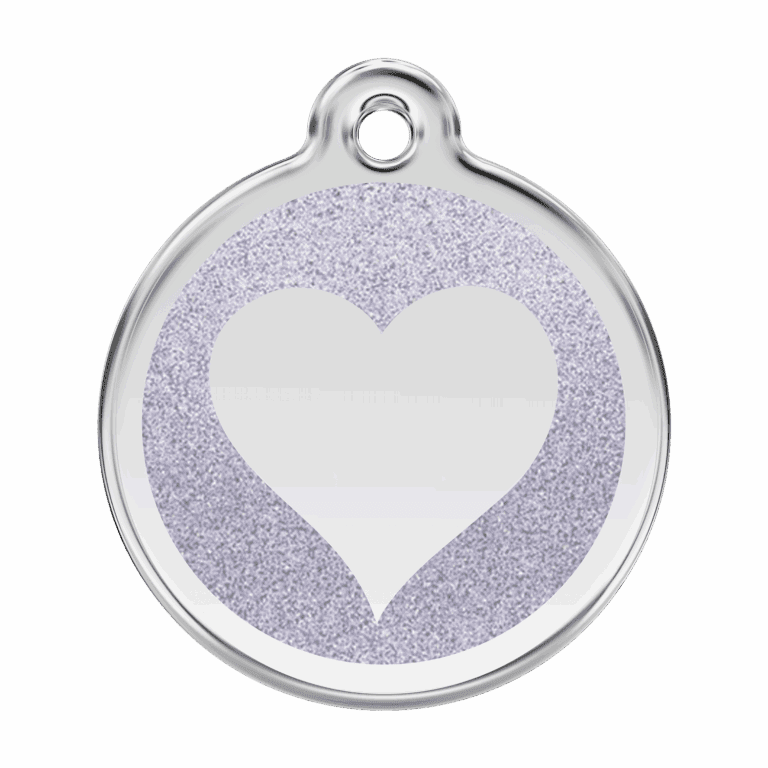 Hundemarke Größe L für mittelgroße bis große Hunde mit silbernem Glitzerherz aus Emaille