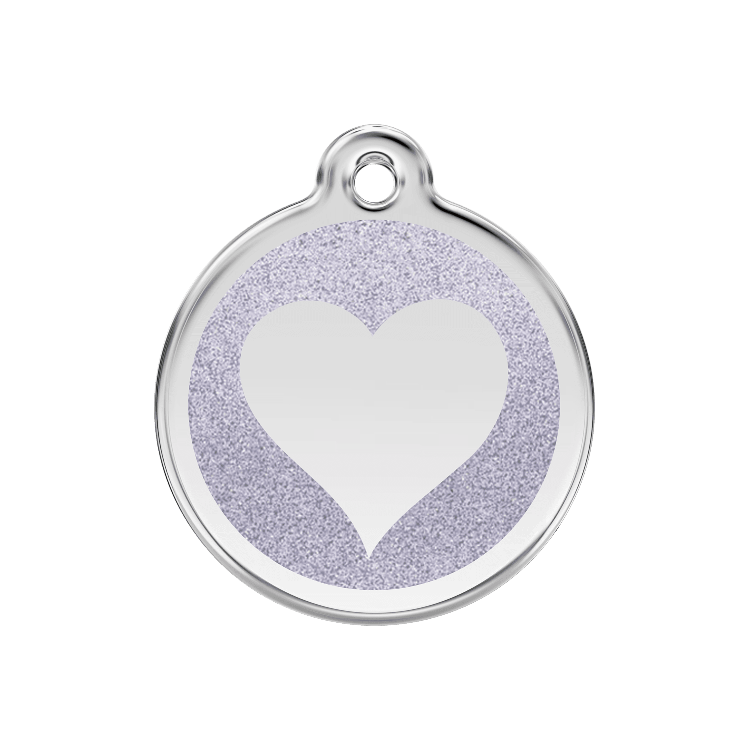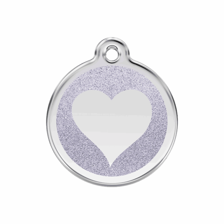 Mit einem Durchmesser von 30 mm und einem Gewicht von 16,1 g ist diese Hundemarke in Größe M speziell für Hunde mit kleinem bis mittlerem Körperbau konzipiert. Das silberne Glitzerherz aus paillettiertem Emaille verleiht der Marke einen dezenten, aber auffälligen Glanz, der das Tragen angenehm leicht hält.