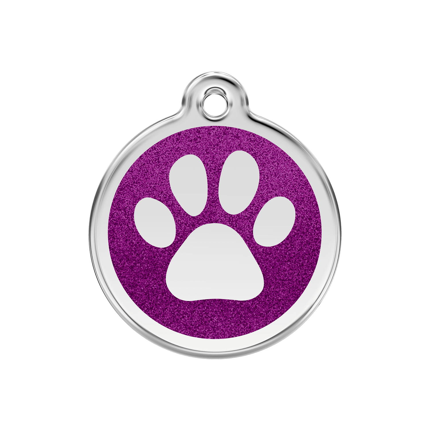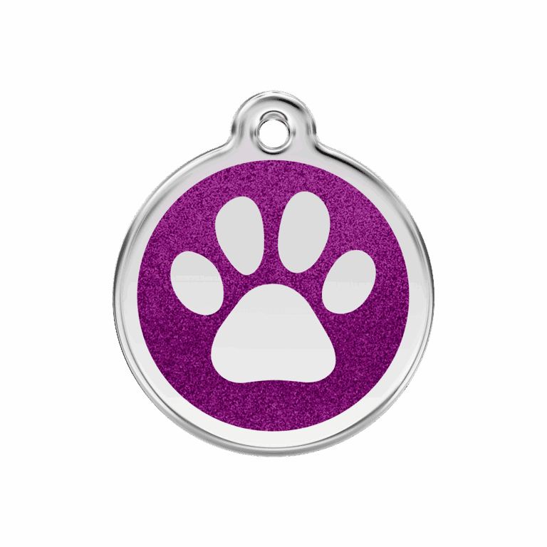 Für Hunde mit einem ausgewogenen Körperbau ist die Größe M eine passende Wahl, da sie eine gute Balance zwischen Präsenz und Leichtigkeit bietet. Um die Wirkung der violetten Glitzer-Emaille zu unterstreichen, empfiehlt es sich, die Hundemarke mit einem Halsband in kontrastreicher Farbe zu kombinieren, zum Beispiel aus hellem Naturleder oder beigem Nylon. So kommt der schimmernde Pfotenabdruck besonders gut zur Geltung.